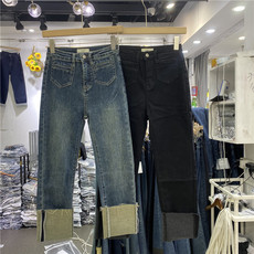 7029正品女春高腰显瘦翻边牛仔裤2022新款弹力九分直筒烟管裤